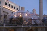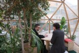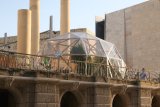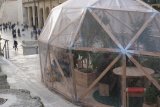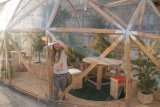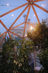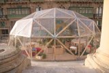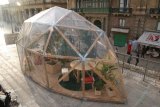 Inhabit is an artwork that turns an outdoor public area into a space with a more specific function; a temporary habitable public area. Inhabit invites the public to enter inside a structure and occupy it by using it as a meeting point where to eat, relax or take shelter from the winter season. Inhabit emulates an indoor public garden and simulates why public gardens are important to a community. It offers the public a space where it can put the routine and alienation of everyday life on hold and take time to slow down.